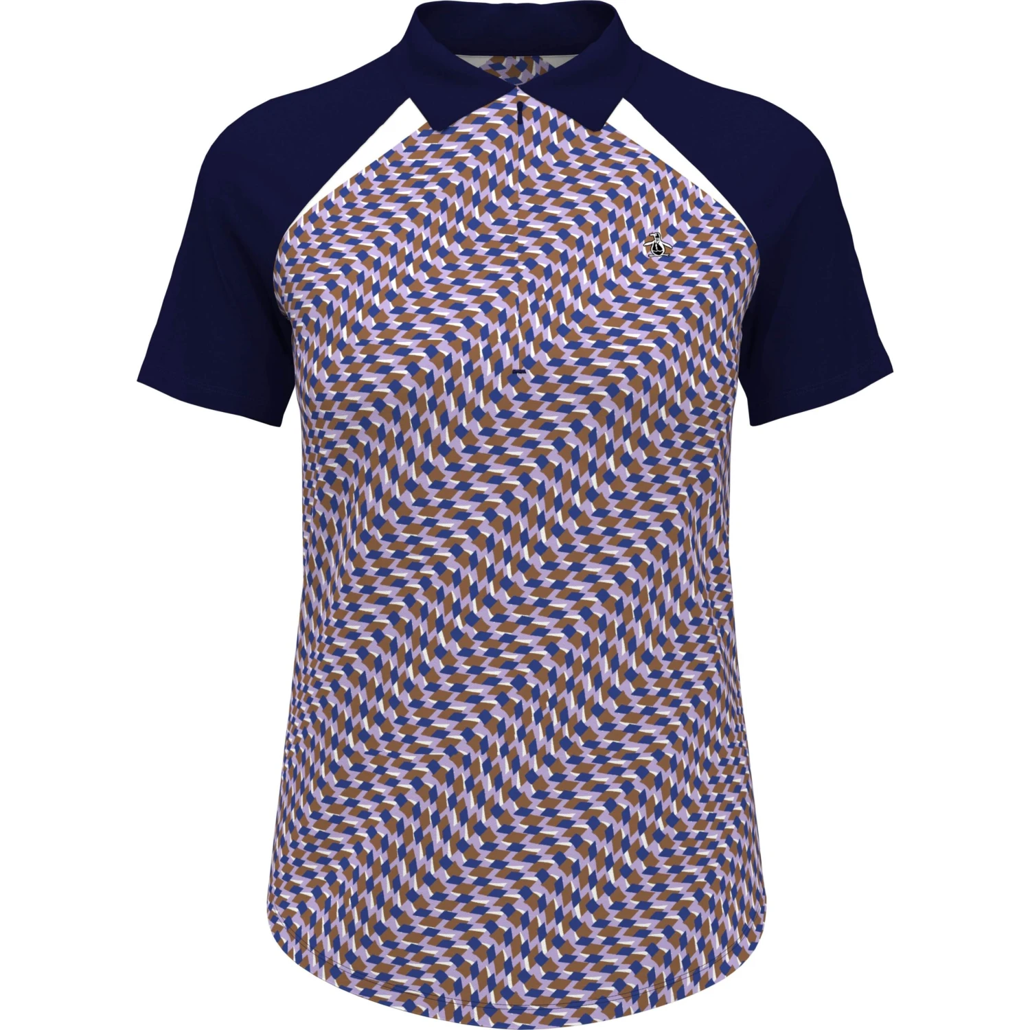 Upgrade your wardrobe with this stylish and sustainable Original Penguin women’s top. Made with lightweight single knit fabric, it features stretch to deliver a comfortable and flattering fit. A color block design and optical print pops on this short sleeve shirt giving your casual look an eye-catching finish. Made from 44% recycled polyester sourced from plastic bottles, this top makes a statement.